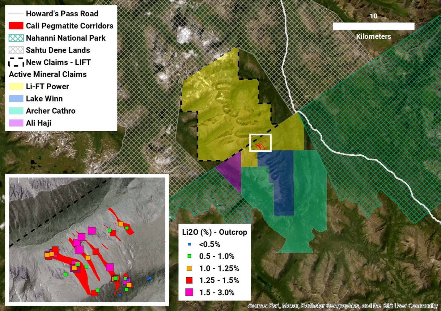 September 3, 2024 – Vancouver, B.C., Li-FT Power Ltd. (“LIFT” or the “Company”) (TSXV: LIFT) (OTCQX: LIFFF) (Frankfurt: WS0) is pleased to report that the Company has increased its land position at the Cali Project by staking an additional 9,681 hectares of contiguous claims within the Little Nahanni Pegmatite District, Northwest Territories, Canada. The recently staked claims have outcropping spodumene pegmatites which are the continuation of Cali dyke swarm that LIFT has defined to date.